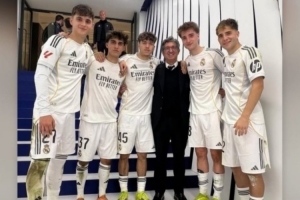 体育资讯3月15日讯 皇马中场巴尔韦德今天更新Instagram,晒出皇马青训球员的照片。
