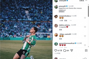 此役安东尼为贝蒂斯踢满全场,并倒钩破门,赛后他在社交媒体上晒出庆祝进球的照片,配文:“我们继续朝着目标前进!”