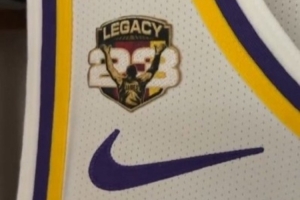 詹姆斯本场比赛的球衣有特殊补丁,印有23、legacy(传奇性、传承)的字样,还有詹姆斯经典撒镁粉的背影。