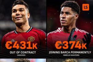 拉什福德(可能被巴萨永久买断):周薪37.4万欧