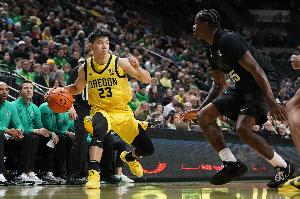 此役俄勒冈大学中国球员林葳出战11分钟三分2投1中,罚球2中2拿到5分1篮板2助攻,有2失误。